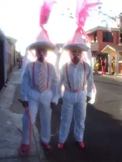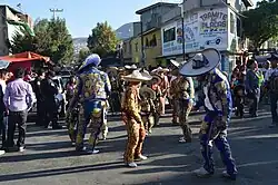 Carnival celebrations in the state of Morelos are generally family-oriented affairs.[38] The best known Carnival in the state of Morelos is in Tlayacapan, noted for its Chinelos dancers. This dance was created as a way for the indigenous to ridicule their Spanish overlords.[39] Other communities with significant Carnival celebrations include Jiutepec, Emiliano Zapata, Xochitepec, Tlaltizapán, Tepoztlán and Yautepec.[38]