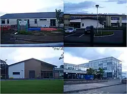 Burnside Primary School is a building in Thomas Street on land that had been used as football pitches.[111] Its catchment area includes the remaining part of Carnoustie and the former rural catchment of Barry Primary, including Barry, Cotside, Balhungie, Ardestie, Woodhill, Grange of Barry and Mains of Ravensby.[108]