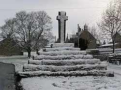 In the centre of the village is a Carperby Market Cross, dated 1674, that tells of the time when Carperby had a market (granted in 1305).[5] In the 17th century the village was an important Wensleydale centre of Quakerism, and its biggest building even today is the classically styled Carperby Quaker Meeting House of 1864.[6] In 1810, the western end of the village supposedly suffered from a fire which destroyed 12 thatched cottages. Whilst there is no documentary evidence of this, it is a locally believed legend and mapping from 1819 and 1856 does show at least nine dwellings as having been removed.[7][8]