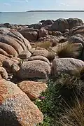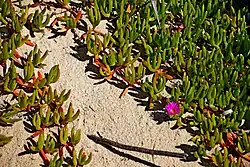 Carpobrotus rossii is common on southern Australian coastal sand dunes and is not considered to be at risk.[8]