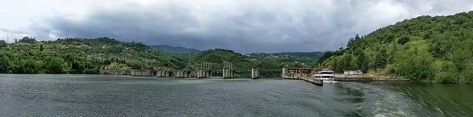 Carrapatelo Dam (Portuguese: Barragem do Carrapatelo) is a concrete gravity dam on the Douro, where the river forms the borderline between the districts of Porto and Viseu. It is located in the municipalities of Marco de Canaveses, in Porto District, and Cinfães, Viseu District, Portugal.