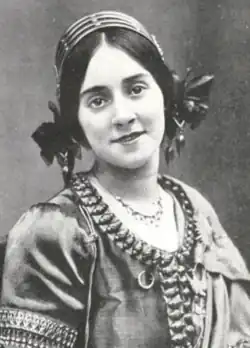 ![]() Carrie Moore in costume for "The Cingalee" (1904) | |