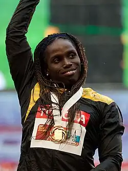 Carrie Russell (born 18 October 1990) is a Jamaican track and field sprinter[1] and bobsledder. She competed in the 4 × 100 metres relay event at the 2013 World Championships in Athletics, winning a gold medal. She is from the parish of St. Thomas. She attended the St. Thomas Technical High School. She was also the bronze medallist at the 2006 World Junior Championships in Athletics.[2]