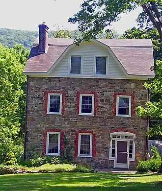The land was originally the property of Isaac Bobbin, an early settler, until being subdivided into the present parcel and sold to Mathias Carvey in 1805, around the time the stone house was built. The house was built in the first decade of the 19th century in the then-dominant Federal style, with two storeys, three bays and a sidehall plan. However, it also features some unique touches such as a gambrel roof, with a corresponding dormer added later. It also appears taller than it actually is due to the sloping land beneath. An original front porch that ran the width of the house was removed during the 20th century.[2]