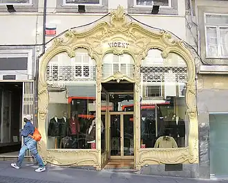 Casa Vicent is a historic building in the civil parish of Santo Ildefonso, in the Portuguese city of Porto. Located in the historic lower town (Portuguese: Baixa), the shop is notable for the Art Nouveau and Rococo elements and undulating forms of its iron facade; it is similar to the facades of the Ourivesaria Cunha and Ourivesaria Reis along the same road, all constructed by the Companhia Aliança.