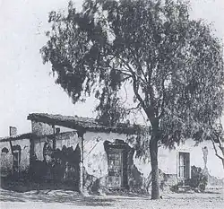 In 1887, a front-page article of the San Diego Union declared the Estudillo home to be "Ramona's Marriage Place", saying, "To sleepy Old Town (the house) is known as the Estudillos, but the outside world knows it as the marriage place of 'Ramona.'"[10] This was despite Jackson never having visited the house, but in the novel, Ramona was married in a "long, low adobe building which had served no mean purpose in the old Presidio days, but was now fallen in decay; and all its rooms, except those occupied by the Father, had been long uninhabited".[12] Despite the novel being a work of fiction, visitors flocked to the building thinking it was the actual location of Ramona's marriage. To be clear, the Union did not simply invent this story; a tourist had already scratched the name "Alessandro" (Ramona's husband in the novel) in one of the walls.[13] The caretaker decided to capitalize on the attendant publicity and began selling off pieces of the house as souvenirs. Naturally, the building's condition began to deteriorate rapidly.[11]