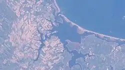 Cascumpec Bay is located where Prince Edward Island's north shore at its northwestern extreme turns northeasterly to become the east shore of the island's Northeast Peninsula. The bay covers an area of approximately 40 square kilometres (15 sq mi) and is relatively shallow. Cascumpec Bay fronts the Gulf of Saint Lawrence along its eastern side but is protected from gulf by a series of sandy barrier islands. Most of the protection is provided by the Cascumpec Sand Hills, a single long barrier island given its name because of its extensive sand dunes. Several estuaries are located along the landward sides of the bay, including the Kildare River, Mill River, Foxely River and Trout River. The lands at the south end of the bay east of the Foxely River are almost entirely composed of peat and are known locally as the Black Banks. Apart from the Black Banks, the Sand Hills, and most other islands, the rest of the land surrounding the bay is largely devoted to intensive agriculture.