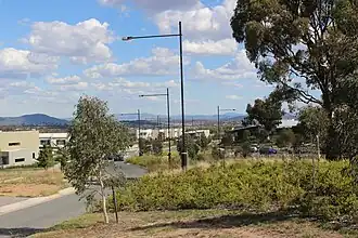 Casey will eventually occupy an area approximately 192 ha in size and accommodate 1,940 dwellings, including about 275 medium density units in the commercial centres. A Group (Shopping) Centre will be constructed in the south-east corner of the suburb near the corner of Horse Park and Clarrie Hermes Drives. A second and minor commercial centre planned for Casey will be built at the northern end of the suburb nearest the future suburb of Taylor. The Group Centre is expected to incorporate a retail core clustered around a 'central green-node' similar to Green Square in Kingston.[6] To improve accessibility of the Group Centre, Clarrie Hermes Drive has been extended through to the Barton Highway at its westerly end.