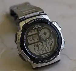 The Casio AE-1000W is a quartz digital watch manufactured by Casio, a Japanese electronics company. The watch was introduced in 2010 in the "Youth Series" range of watches designed to attract young buyers.[2] The watch is popular for its many features, including world time, and its low price. The AE-1000W has several other variations as part of the AE-series of watches in the Casio Youth Series.