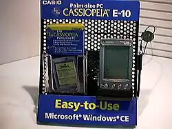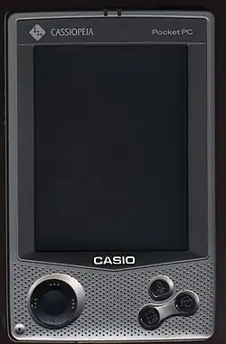 Casio Cassiopeia was the brand name of several PDAs manufactured by Casio. Earlier models ran the Windows CE operating system, with later versions running Pocket PC or Windows Mobile. Casio was one of the first manufacturers of PDAs, developing at the beginning small pocket-sized computers with keyboards and grayscale displays and subsequently moving to smaller units in response to customer demand.