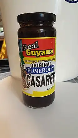 Most cassareep is exported from Guyana.[8] The natives of Guyana traditionally brought the product to town in bottles,[9] and it is available on the US market in bottled form.[10] Though the cassava root traveled from Brazil to Africa, where the majority of cassava is grown, there is no production of cassareep in Africa.[11]