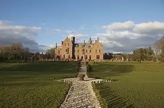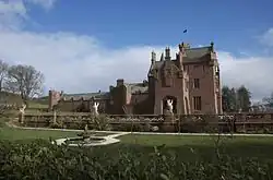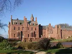 The sisters commissioned the present castle in 1845. It was designed by the York architect George Fowler Jones in the Scottish Baronial style and built in a local pink sandstone, quarried on the estate. Fowler Jones had designed several substantial commissions for the sisters in the north of England, including almshouses and churches. Whilst Mary Isabella and her husband made their home in the Yorkshire seat of the Gascoignes (Parlington Hall), Elizabeth and her husband occupied Castle Oliver. The house was later inherited by Elizabeth's step-grandson, the Honourable William Cosby Trench.