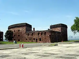 Castle Williams is a circular fortification of red sandstone on the northwest point of Governors Island, part of a system of forts designed and constructed in the early 19th century to protect New York City from naval attack. It is a prominent landmark in New York Harbor. Together with Fort Jay, it is managed by the National Park Service as part of Governors Island National Monument.