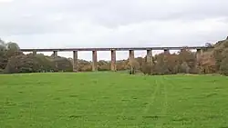 Also known as the Enterkine Viaduct this wrought iron bridge on stone pillars originally carried the old G&SWR line from Ayr to Cronberry over the River Ayr, latterly it was used to carry coal trains to the Killoch washery. It was still in service in 2009.[20]