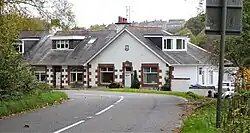 Built in 1808 on a prominent position overlooking the River Ayr and Gadgirth Holm it was purchased in 1949 by the council became a children's home.[16] It was demolished in 1968.[20] It had been built on the site of Gadgirth Castle.[3] As stated, the 1775 William Armstrong map appears to indicate a house rather than a castle with a road running to it via Enterkine and with a bridge across the River Ayr as confirmed by the name Bridgend.[18][19] In 1828 the mansion house is clearly shown with a network of roads.