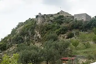 preserved | 329 m (1,079 ft) | 6th century | Perched on a rocky hill, above the village with the same name, the castle has a triangular shape with two observation towers. | |