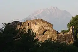 Ruins | 1st century BC / 13th century | A ruined medieval castle above a prehistoric hillfort | |