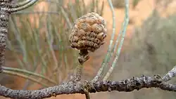 Casuarina pauper, commonly known as black oak, belah or kariku,[2] is a species of flowering plant in the family Casuarinaceae and is endemic to southern continental Australia. It is a dioecious tree with fissured or scaly bark, waxy branchlets, the leaves reduced to scales in whorls of 9 to 13, the fruit 13–18 mm (0.51–0.71 in) long containing winged seeds (samaras) 5.5–7.0 mm (0.22–0.28 in) long.