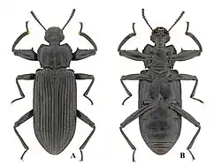 Adults are black and dim shiny and reach a length of 13.8–15.4 mm.[1]