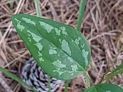 Smilax glauca is a monocot in the family Smilacaceae.[12] The family comprises herbaceous vines and woody lianas typically with prickles and tendrils. Smilax glauca has the common name of cat greenbrier.[13] Some authors recognize two varieties of the species (var. leurophylla and var. genuina) though Flora of Virginia only recognizes one.[14][15]