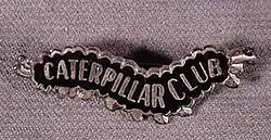 The successor to the original Irvin company still provides pins to people who have made a jump. In addition to the Irvin Air Chute Company, other parachute manufacturers have also issued caterpillar pins for successful jumps. GC Parachutes formed their Gold Club in 1940.[7] The Switlik Parachute Company of Trenton, New Jersey issued both gold and silver caterpillar pins. The Pioneer Parachute Co. in Skokie, Illinois, also presented plaques to people who packed the parachutes that saved lives.