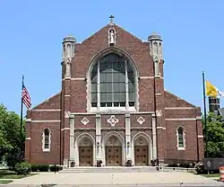 O'Neill was replaced by the Rev. John Hackett, who thought he would spend two years here but served as pastor for 30 years.[1][2] He had St. Augustine High School built in 1926. The parish plant was moved from West Kalamazoo Avenue to West Michigan Avenue. In 1937, the parish became part of the newly created Diocese of Lansing. Hackett was named the Vicar General of the diocese. The grade school building was added to the high school building in 1939. Construction of the current church began in 1950 with the laying of the cornerstone on August 13. Lansing Bishop Joseph H. Albers consecrated it December 4, 1951.