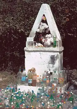 The Catholic faith also became integrated in the industrial and post-industrial middle class as it developed, in particular through the lay movements created following the 1891 Rerum novarum encyclical enacted by Pope Leo XIII, and which insisted on the social role of the Roman Catholic Church.[45] New ceremonies appeared throughout the 20th century, such as Fidencio Constantino Sintora (known as the Niño Fidencio) (1898–1938) in Mexico, the Santa Muerte in Mexico (who has been attacked by the Catholic Church as being a pagan figure) or Difunta Correa in Argentina. The latter's pilgrimage site was visited by 700 000 persons in 2005.[45]