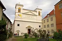 In 2020, estimates suggested that there were 7,000 Catholics in the country (0.5% of the population);[3] this included 31 priests and nuns across 10 parishes. Most are of Estonian background but also many Lithuanians and Poles. Most live in the major towns such as Tallinn, Tartu, and Narva. Estonia had no dioceses after 1560 but after 1924 the whole country formed an apostolic administration. From 2005 to 2024 the Apostolic Administrator of Estonia who resides in Tallinn was Bishop Philippe Jourdan. He then became bishop of the newly established Diocese of Tallinn, which encompasses all of Estonia. Two parishes in Estonia (Tallinn and Tartu) are of the Greek Catholic Church and serve a mostly Ukrainian congregation.[4]