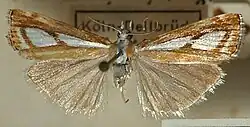 Catoptria osthelderi is a species of moth of the family Crambidae described by Gustave de Lattin in 1950. It is found in Europe. The imago can only be distinguished from Catoptria permutatellus by microscopic examination of the genitalia.