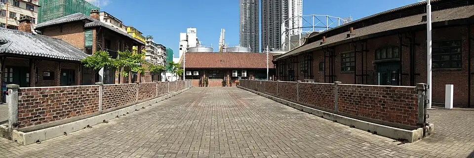 The slaughterhouse was originally located in Hung Hom, occupying 1.7 acres (0.69 ha) which could hold 120 head of cattle, 200 lambs and 400 pigs.[1] It was moved to Ma Tau Kok near To Kwa Wan due to the construction of Kowloon–Canton Railway. The former Ma Tau Kok Quarantine Depot (馬頭角牛畜檢疫站, colloquially known as 馬頭角牛房) was built in 1908. It was owned by the government and was used as a cattle quarantine and slaughter centre for more than 90 years. Central planning and development occurred throughout the years and people started to reside at Ma Tau Kok. In 1999, the old Ma Tau Kok Cattle Depot was finally closed down due to expressed concerns by the neighbouring residents about hygiene problems deriving from a slaughterhouse in the urban area.[1] It was replaced by a new slaughterhouse in Sheung Shui.