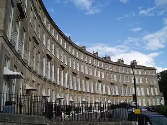Cavendish Crescent in Bath, Somerset, England, is a Georgian crescent built in the early 19th century to a design by the architect John Pinch the elder.[1] At 11 houses, it is the shortest of the seven Georgian crescents in Bath. It also has one of the plainest facades, with no central feature, the only decoration being the consoles over the central first floor window of each house.[1]
