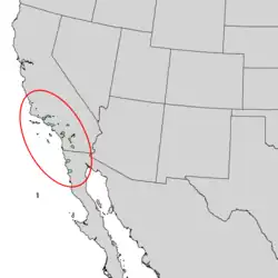| Natural range of Ceanothus spinosus in California chaparral and woodlands habitats. | |