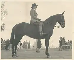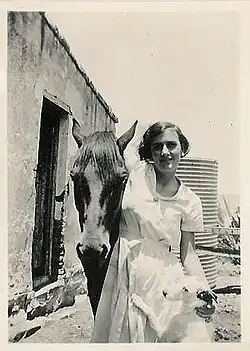 She was an equitation and show rider and breeder of horses. She owned the Maastricht Arabian Horse Stud[3] in the Albany District which was registered with the Riding Horse Breeders' Society of South Africa. At this time she was privileged to use the famous Arabian sire, Jiddan, on her mares. Details can be verified in Showing Horses in South Africa 2nd Edition, Chapter XIV.