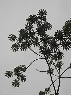 Cecropia obtusifolia is a species of plant in the family Urticaceae. It is found in Colombia, Costa Rica, Nicaragua, Mexico and Panama. Common Names include blunt-leaved trumpet tree, pop-a-gun, tree-of-laziness, and snakewood tree.[3] In Central America it is known as Guarumo. Though impressive silhouetted against the sky, it is an invasive species in the islands of Hawaii.