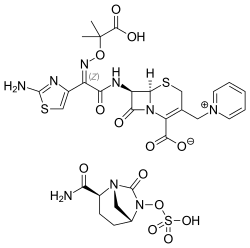 Ceftazidime/avibactam, sold under the brand name Avycaz (by AbbVie) among others, is a fixed-dose combination medication composed of ceftazidime, a cephalosporin antibiotic, and avibactam, a β-lactamase inhibitor.[4] It is used to treat complicated intra-abdominal infections, urinary tract infections, and pneumonia.[4][5] It is only recommended when other options are not appropriate.[4] It is given by infusion into a vein.[4]