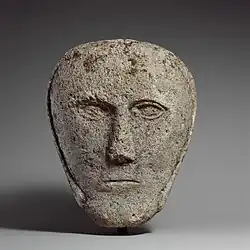 The type spread across Northern Europe, with the most numerous examples appearing in the northeast and southeast of Gaul (notably at Roquepertuse, a major Celtic religious center near Marseille, France)[6][7] and across the northern British Isles during the Romano-British period. Most scholars believe that the heads were a combination of non-representational abstract Celtic art and the monumentalism of Roman sculpture[1]
