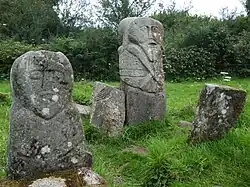 Celtic stone idols are Northern European stone sculptures dated to the northern continent's Iron Age, that are believed to represent Celtic gods. The majority contain one or more human heads, which may have one or more faces. It is thought that the heads were often placed on top of pillar stones and were a centrepiece at cultic worship sites. The sculptures are found across Northern Europe but are most numerous in Gaul (roughly today's France, Belgium and Luxembourg) and Britain and Ireland, with the majority dating to the Romano-British (between 43 and 410 AD) and Gallo-Roman periods. Thus, they are sometimes described as a result of cultural exchange between abstract Celtic art and the Roman tradition of monumental stone carving. Parallels are found in contemporary Scandinavia.[1][2]
