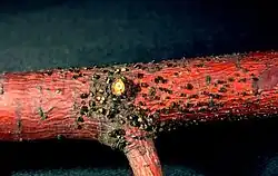 Cenangium is a genus of fungi in the family Helotiaceae.[3] The genus contains 25 species. The type species Cenangium ferruginosum causes dieback of pines.[4]