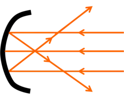 It can also be defined as the spherical distance between the point at which all the rays falling on a lens or mirror either seems to converge to (in the case of convex lenses and concave mirrors) or diverge from (in the case of concave lenses or convex mirrors) and the lens or mirror itself.[2] It lies on the principal axis of a mirror or lens.[3] In case of a convex mirror it lies behind the polished, or reflecting, surface and it lies in front of the reflecting surface in case of a concave mirror.[4]