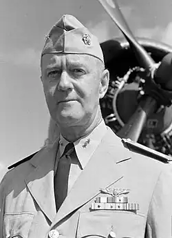 Vice Admiral Richmond Kelly Turner in amphibious command ship Rocky Mount