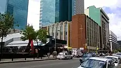 The current church building, opened in 1967, is a five-storey structure designed in a modernist style. The sanctuary is located on the upper floors, with offices, meeting rooms, and community spaces distributed throughout the building.[1]
