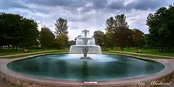 The centre piece of the park is the fountain garden which is in the middle of a large green open space with footpaths and a variety of specimen trees and flowers.[2]