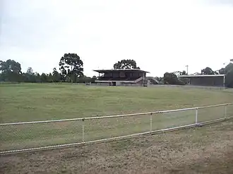 The ground was also prominent as the home ground of the Waverley Football Club, which played in the Victorian Football Association from 1961 until 1987, and before that as the Glen Waverley Football Club in the Caulfield-Oakleigh District League.[7] The oval and pavilion were upgraded in 1962 to bring it up to VFA standards, forcing the club to play its home games on the northern half of the wider Central Reserve for that season; a covered standing shelter was constructed in the mid-1960s, and the main grandstand was opened in 1969.[8]