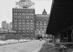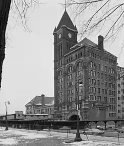 Central Station was an intercity passenger terminal in downtown Chicago, Illinois, at the southern end of Grant Park near Roosevelt Road and Michigan Avenue. Owned by the Illinois Central Railroad, it also served other companies via trackage rights. It opened in 1893, replacing Great Central Station (on the site of the current Millennium Station), and closed in 1972 when Amtrak rerouted services to Union Station. The station building was demolished in 1974. It is now the site of a redevelopment called Central Station, Chicago.