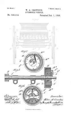 - ^ US patent US598314, W A Crowdus, "AUTOMOBILE VEHICLE", issued 1898-02-01