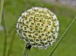 | Inflorescence of Cephalaria alpina at the Paradisia Alpine Botanical Garden | |