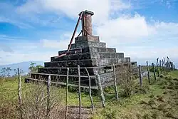 Locally, this mountain is known as "La Cruz," because of the large cross that has been built at the very peak. There are three crosses in total. The first one is made from concrete; the second one is a steel cross set atop a concrete pyramid. The third, which is at the peak, is the tallest of the three and is made of steel. From the top vantage, it is possible to see almost the entire Central Valley including the city of San José.[2][3]