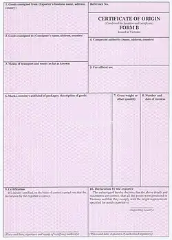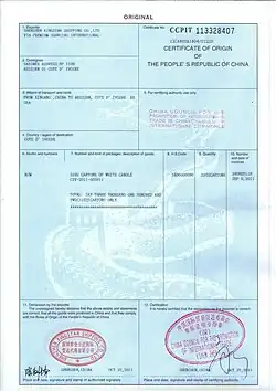 - ^ "What is a Certificate of Origin? | Certificates of Origin | Trade Facilitation | Chamber Services | ICC - International Chamber of Commerce". www.iccwbo.org. Archived from the original on 2015-05-23. Retrieved 2015-06-04.