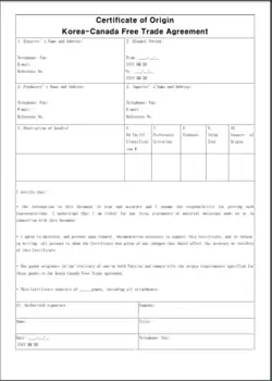 In the case of self-certification, the exporter or the manufacturer will have the right to assess the compliance of its product with the applicable origin criteria. It may then issue a certificate of origin using a prescribed form. Sometimes, there is no prescribed form, which means the exporter or the manufacturer is allowed to simply provide a (sworn) declaration about the origin of the goods. The declaration may either be made on a separate document, or incorporated in another trade document, such as an invoice.[8]