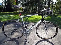 Cervélo Cycles Inc. is a manufacturer of racing and track bicycles.[3] Cervélo uses CAD, computational fluid dynamics, and wind tunnel testing at a variety of facilities including the San Diego Air and Space Technology Center, in California, US, to aid its designs. Frame materials include carbon fibre. Cervélo currently makes 5 series of bikes: the C series and R series of road bikes, the latter featuring multi-shaped, "Squoval" frame tubes; the S series of road bikes and P series of triathlon/time trial bikes, both of which feature airfoil shaped down tubes; and the T series of track bikes.[4] Additionally, the company manufactures the Caledonia, Soloist, and Aspero models. In professional competition, cyclists have ridden Cervélo bicycles to victory in all three of road cycling's grand tours: the Tour de France;[5] the Giro d'Italia;[6] and the Vuelta a España.[7] In 2023, Cervélo achieved a historic sweep of all three grand tours in a single year.[8]